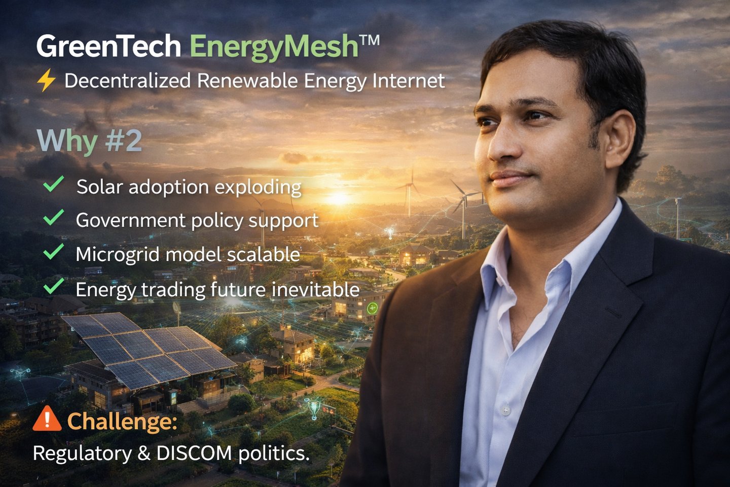 GreenTech EnergyMesh™ is a climate-aware, AI-driven decentralized renewable energy trading platform that transforms: